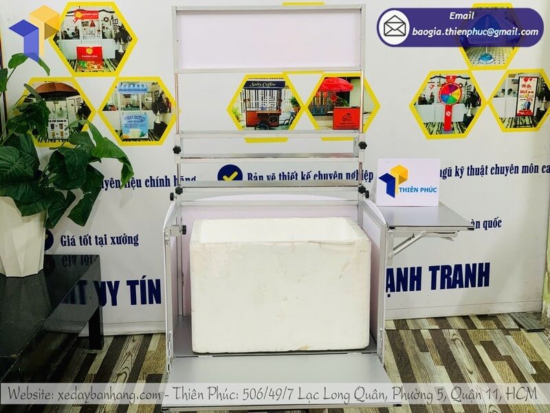 - Đa năng và tiện dụng: Thùng được thiết kế thông minh với các ngăn đựng nguyên liệu, ly, ống hút, giúp thao tác nhanh chóng.