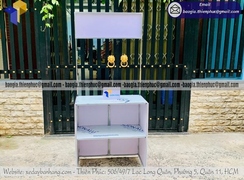 + Mặt trên quầy và vách ngăn bên trong bằng khung sắt ốp alu chống thấm nước