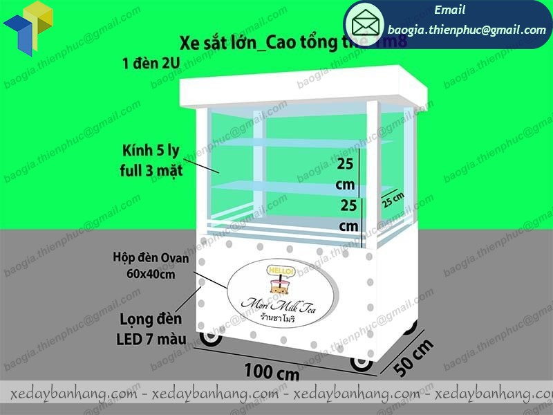 Xe sắt bán trà sữa có mái đang trở thành từ khóa siêu hot trên thị trường hiện nay bởi nhu cầu kinh doanh mô hình trà sữa lưu động ngày càng tăng cao. Có thể nói rằng đây là một công việc vốn ít, lời nhiều, hấp dẫn mọi chủ doanh nghiệp. Hiện nay, trên thị trường có nhiều công ty doanh nghiệp thiết kế sản xuất xe đẩy bán trà sữa đồ ăn vặt với mẫu mã đa dạng, phong phú, kích thước đa dạng.