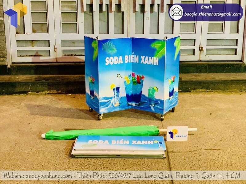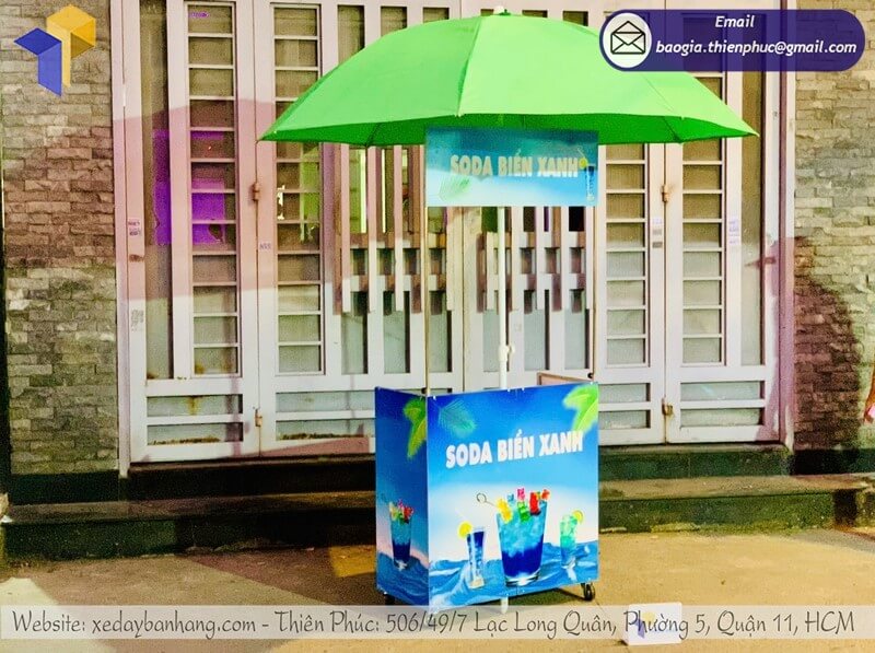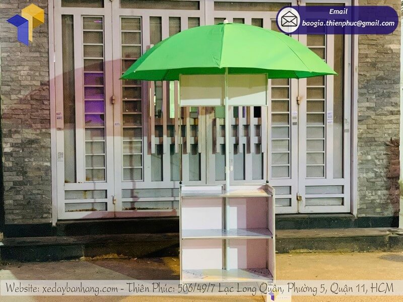 Dù che giúp hạn chế tác động của nắng gắt, mưa nhẹ, đồng thời tạo cảm giác chuyên nghiệp và dễ chịu cho khách hàng khi dừng lại mua hàng. Ngoài ra, phần dù có thể tận dụng để gắn logo, tên thương hiệu hoặc thông tin sản phẩm, giúp tăng khả năng nhận diện từ xa.