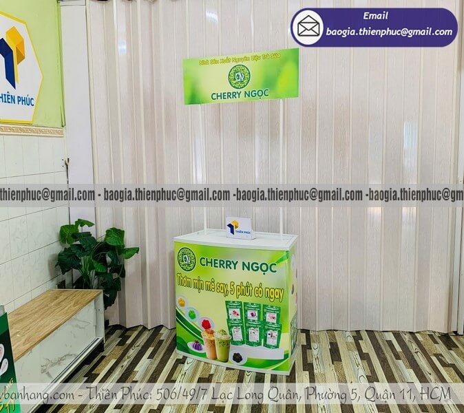 Khả năng tùy chỉnh in ấn: Một quầy sampling chuyên nghiệp cần hỗ trợ in decal hoặc ốp panel nhận diện thương hiệu dễ dàng thay thế giữa các chiến dịch. Hỏi kỹ nhà cung cấp về quy cách kỹ thuật in ấn để tránh phát sinh chi phí ngoài dự kiến.