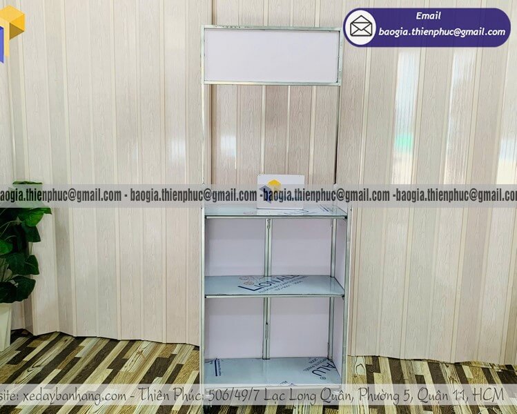 Phần khung và bánh xe được thiết kế bền để dùng lâu dài qua nhiều chiến dịch. Khi thay đổi thông điệp hay ra mắt sản phẩm mới, bạn chỉ cần thay phần mặt in – chi phí thấp hơn nhiều so với làm lại toàn bộ quầy. Đây là lý do nhiều nhãn hàng FMCG lớn đầu tư quầy chất lượng cao ngay từ lần đầu.