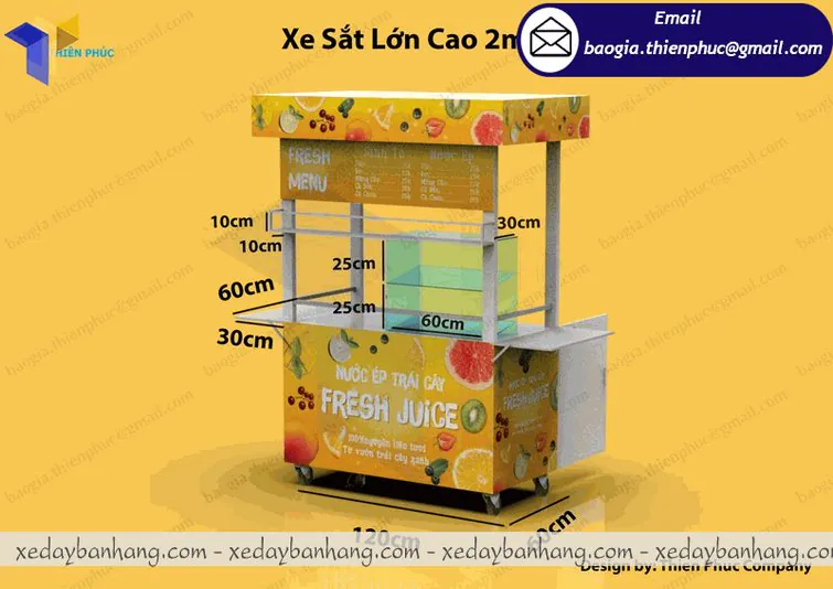 Thiết kế xe sắt bán nước ép trái cây đa năng đầy tiện dụng
