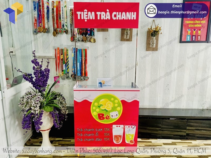 Tự hào là đơn vị cung cấp đa dạng các loại xe lắp ráp, Thiên Phúc sẽ cung cấp trọn gói dịch vụ gia công quầy xếp bán trà chanh. Bao gồm 1 số hạng mục miễn phí: thiết kế, in ấn, gia công. Hoặc nếu khách cần thay đổi 1 số chi tiết của quầy như kích thước các ngăn tôn. Chúng tôi cam kết đem lại cho khách 1 sản phẩm tốt nhất với dịch vụ hài lòng nhất.