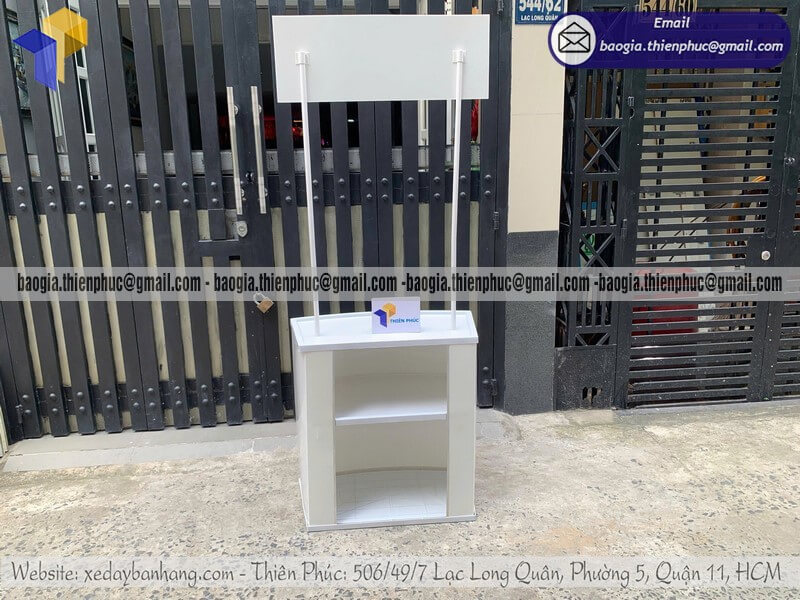 + Hai cây chống nối với logo và phần quầy bằng thép ống sơn trắng