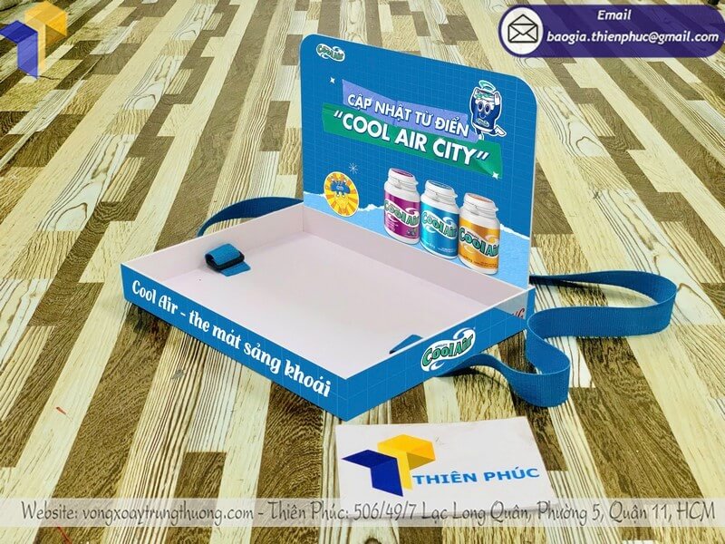 Chúng tôi sử dụng công nghệ in decal hoặc in UV hiện đại, giúp logo hiển thị rõ, màu sắc chuẩn thương hiệu, không phai mờ trong quá trình sử dụng lâu dài.