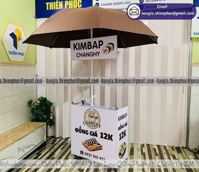 Từ khóa: quầy bán cơm cuộn, quầy bán cơm cuộn lưu động, quầy bán cơm cuộn gấp gọn, quầy bán cơm cuộn vỉa hè, quầy bán cơm cuộn có dù che, quầy bán cơm cuộn take away, quầy bán sushi lưu động, quầy bán kimbap di động, quầy bán đồ ăn vặt ngoài trời, quầy bán cơm cuộn giá rẻ