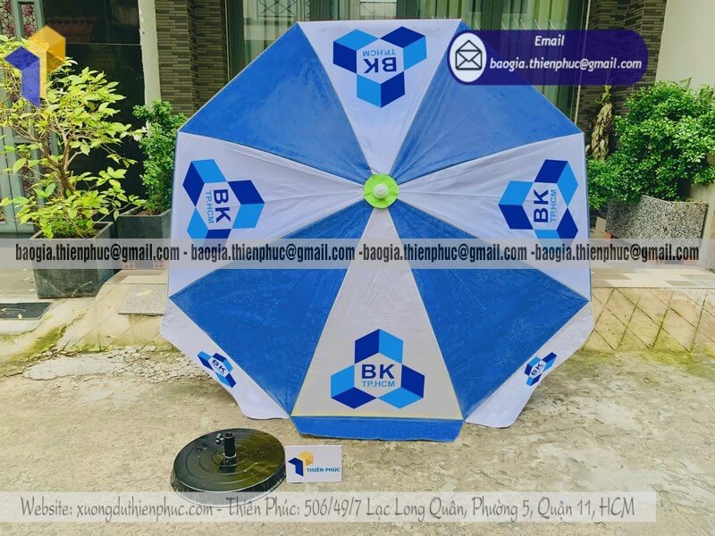 Dù che nắng quảng cáo ngoài trời in logo được gia công tỉ mỉ, kiểm tra kỹ lưỡng từng chi tiết để đảm bảo độ bền, thẩm mỹ và an toàn sử dụng.